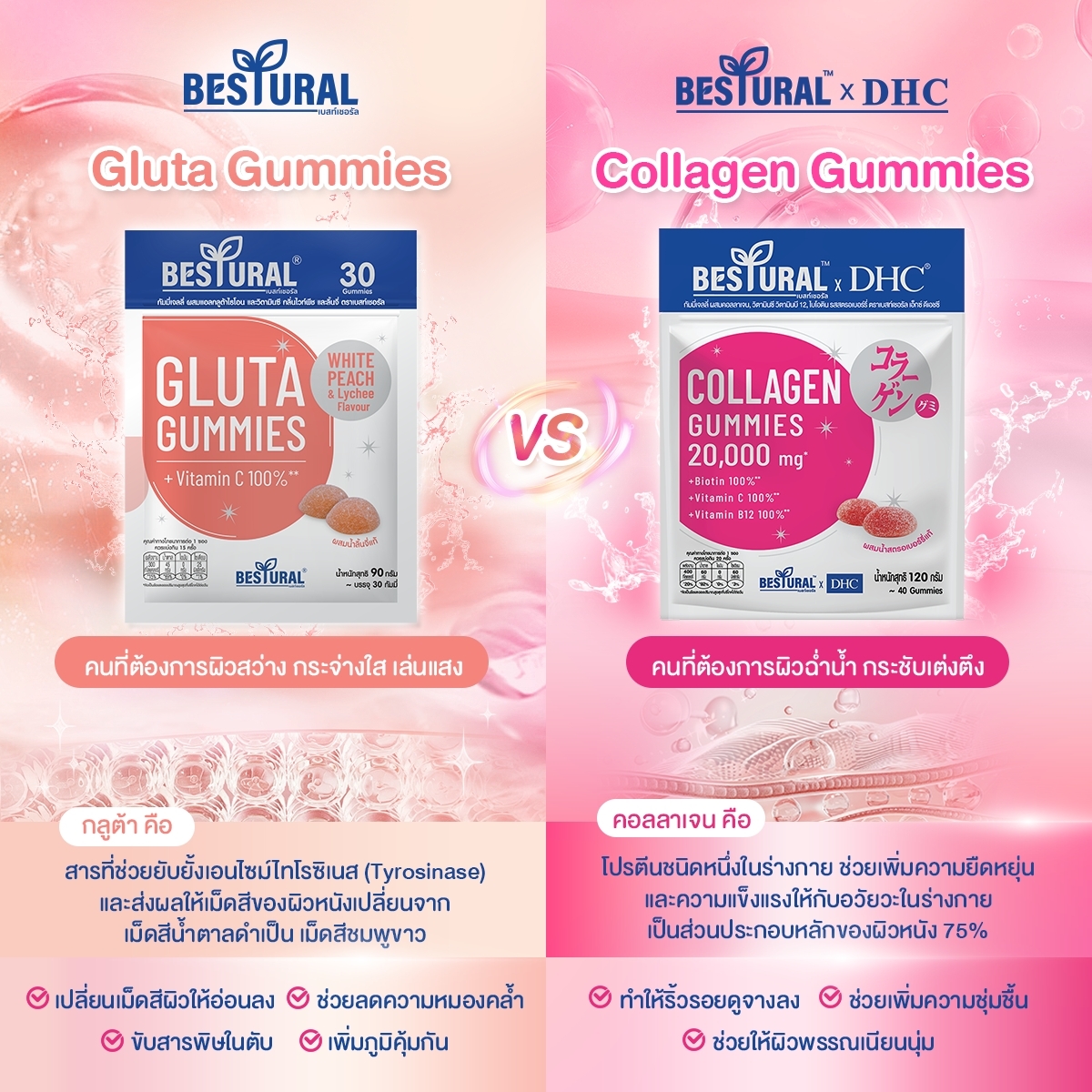 กลูต้า vs คอลลาเจน ต่างกันอย่างไร