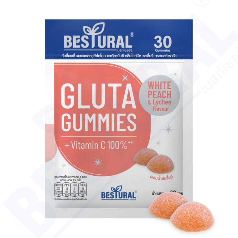 Bestural Gluta Gummies สร้างขึ้นมาเพื่อตอบโจทย์ปัญหาต่างๆที่เป็นอุปสรรคในการบริโภคอาหารเสริม ซึ่งมาในรูปแบบกัมมี่กลิ่นไวท์พีช และลิ้นจี่ อีกทั้งยังใส่น้ำลิ้นจี่แท้ๆเข้าไปด้วย ทำให้ทานง่าย รสชาติหอมหวาน ซึ่งคุณมั่นใจได้เลยว่าคุณจะได้รับกลูต้าไธโอนไปเต็มๆในแต่ละวัน เพียงเคี้ยวเพลินๆ วันละ 2 กัมมี่ คุณก็จะได้ปริมาณกลูต้าไธโอนไปถึง 125 มิลลิกรัม หรือหากต้องการบูสผิวขาว ก็ทานเพิ่มเข้าไปเป็นวันละ 4 กัมมี่ เป็น 250 มิลลิกรัม ก็สามารถทำได้ ที่สำคัญเรายังเสริมวิตามินซี 100% ที่จะมาช่วยให้กลูต้าไธโอนที่บริภคเข้าไปมีการดูดซึมที่มีประสิทธิภาพมากขึ้นไปอีก